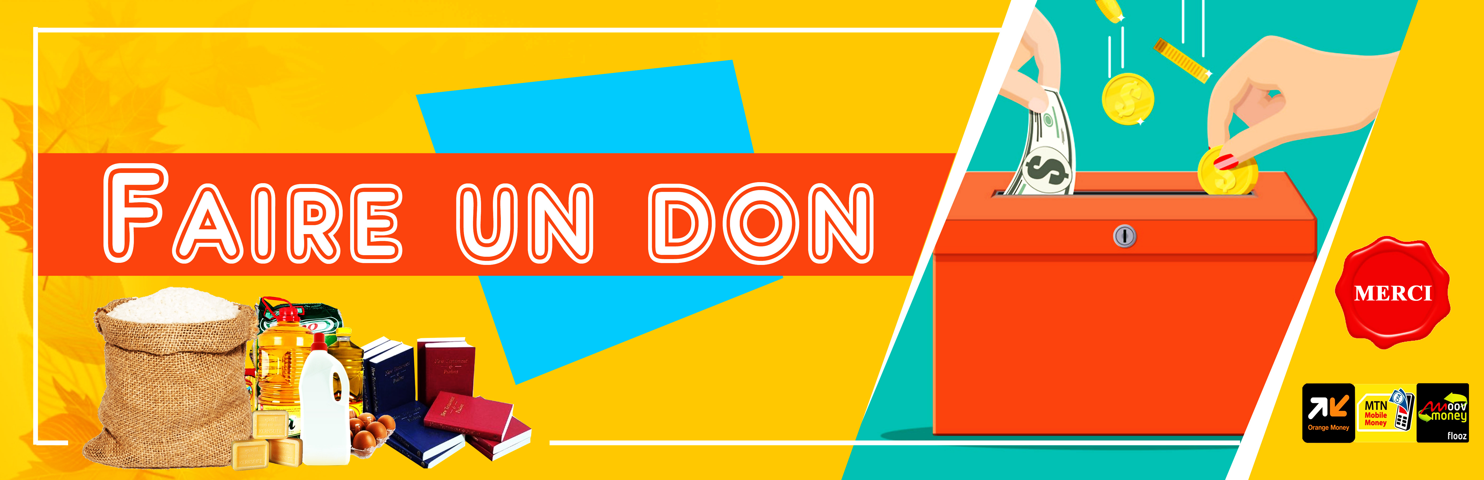 Dans le cadre de ses activités, la Fondation Maranatha a besoin d’appuis financiers et matériels, de vivres et de non vivres (denrées alimentaires, vêtements, jouets…), de bibles… Votre contribution est la bienvenue et sera, nous nous y engageons devant le Seigneur, intégralement et fidèlement utilisée pour l’évangélisation et le soutien aux veuves, aux orphelins et aux personnes en situation de précarité. Puisse le Seigneur, le Maître de l’œuvre et le Père des orphelins se souvenir de votre générosité !